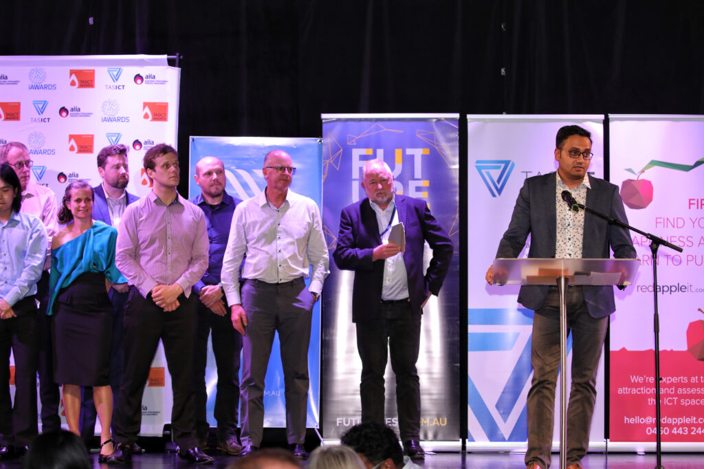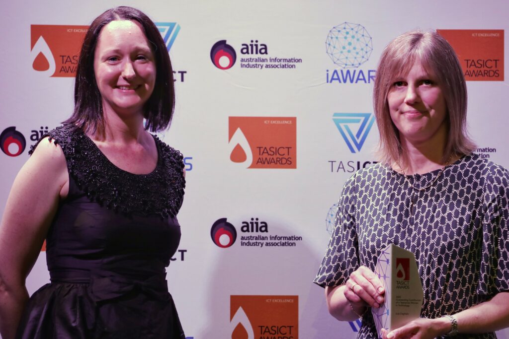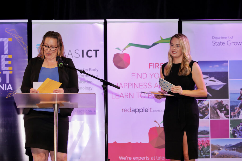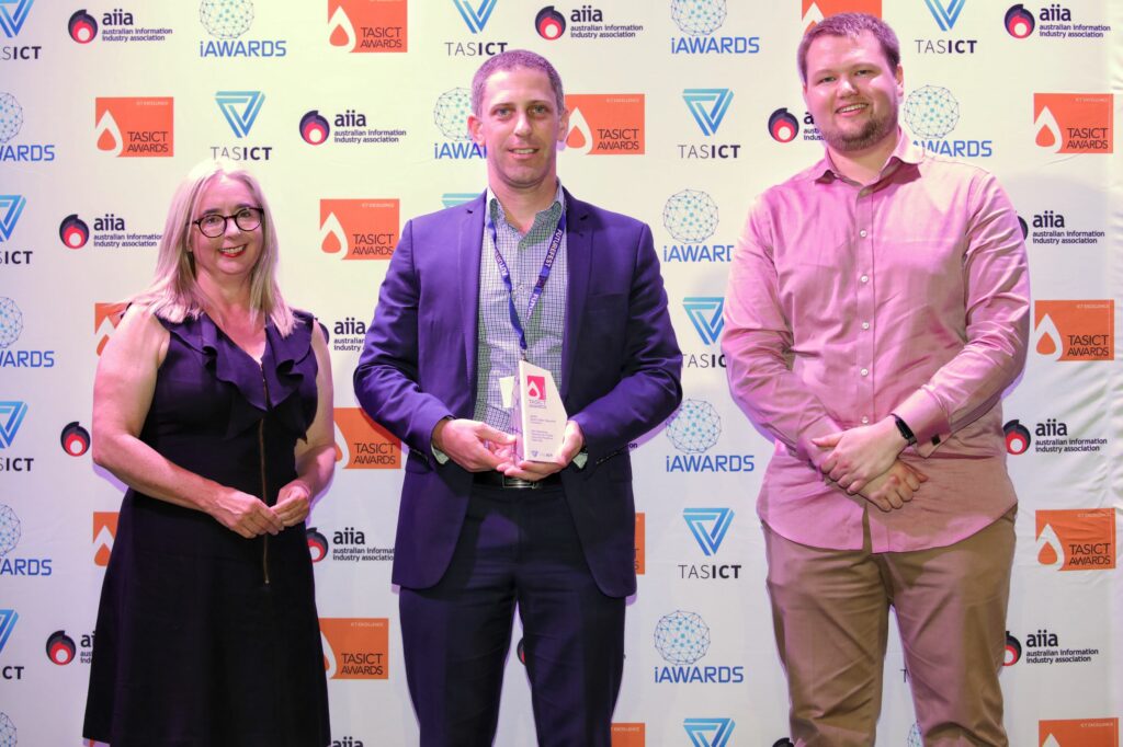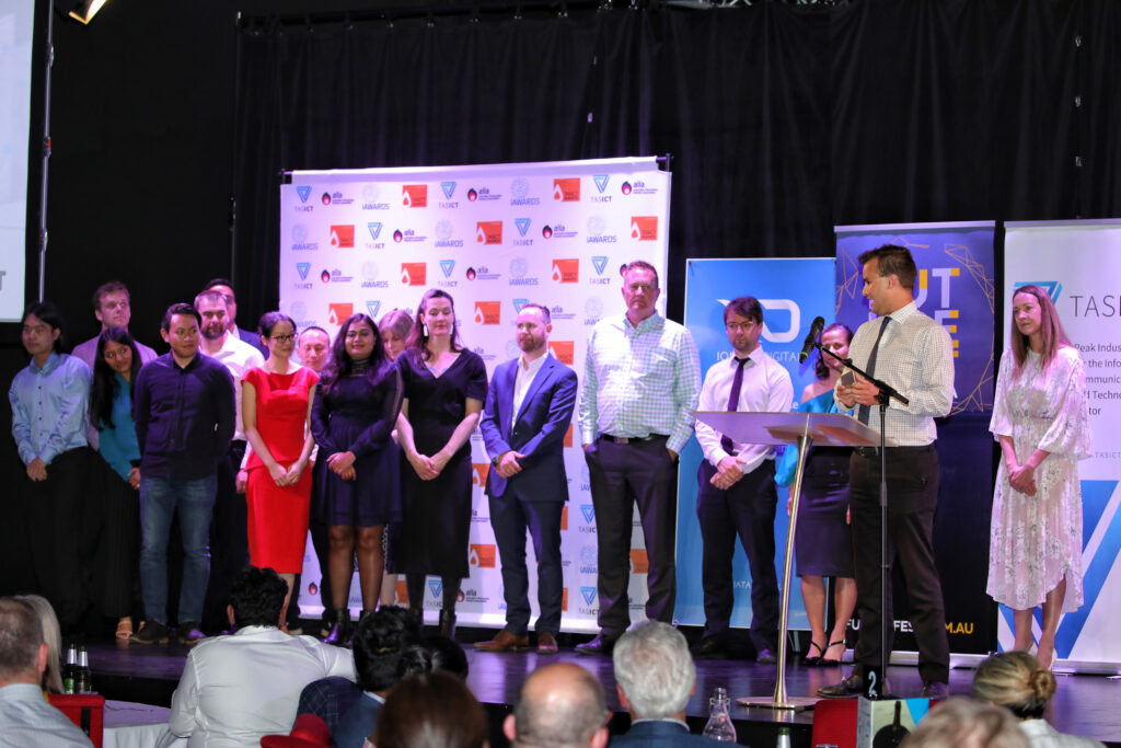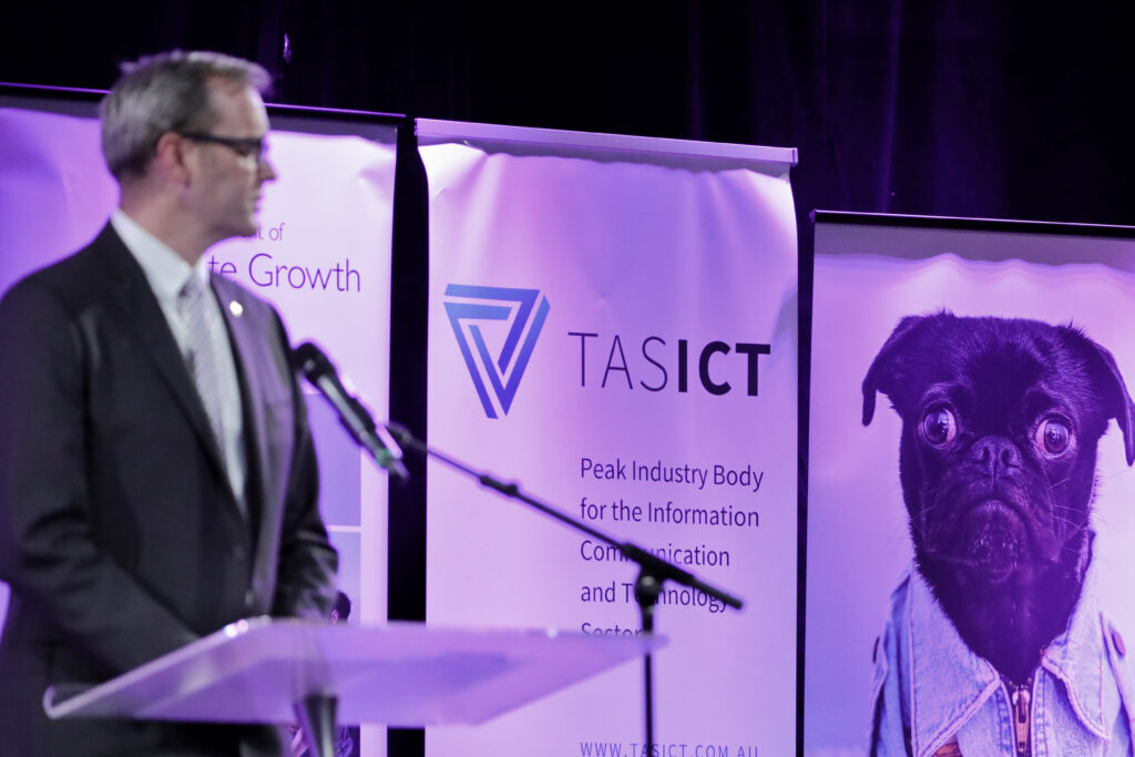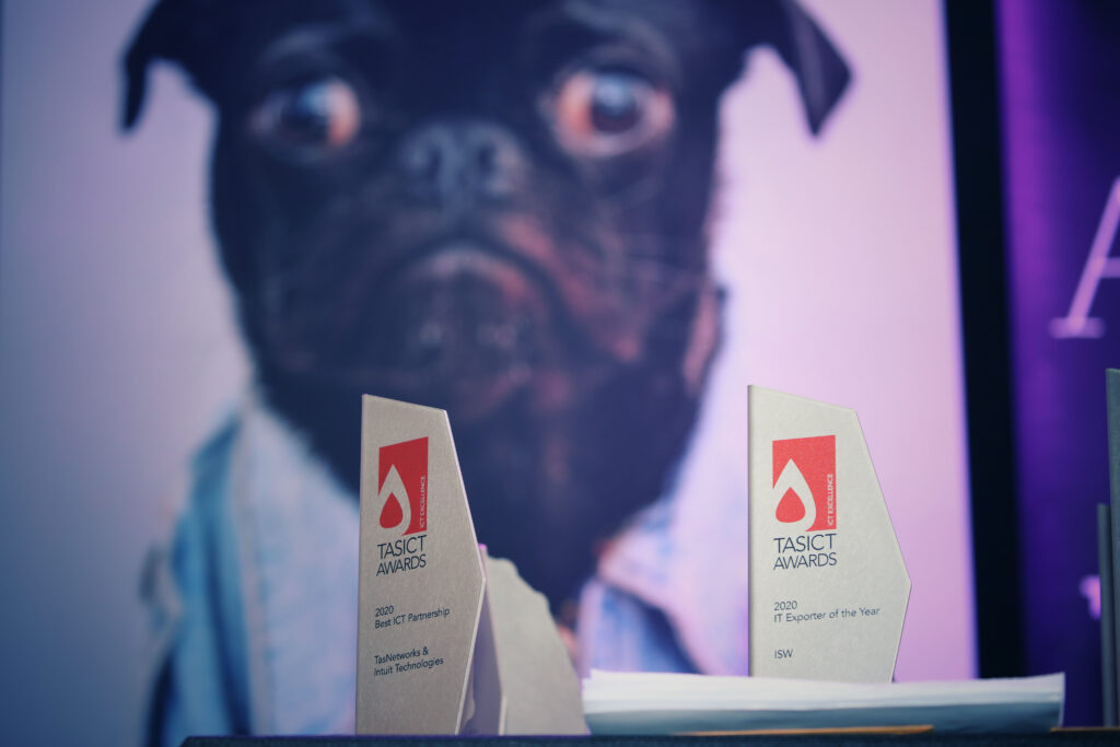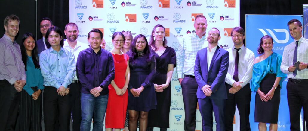 The 2020 TasICT Excellence Awards were held at the C3 Convention Centre South Hobart on Friday November 13. Sponsors of the 11 Award categories presented the winners with their trophies and took the opportunity to pose for photographs at the Media Wall. Our official Photographer was Paul Guo from Paul Photography