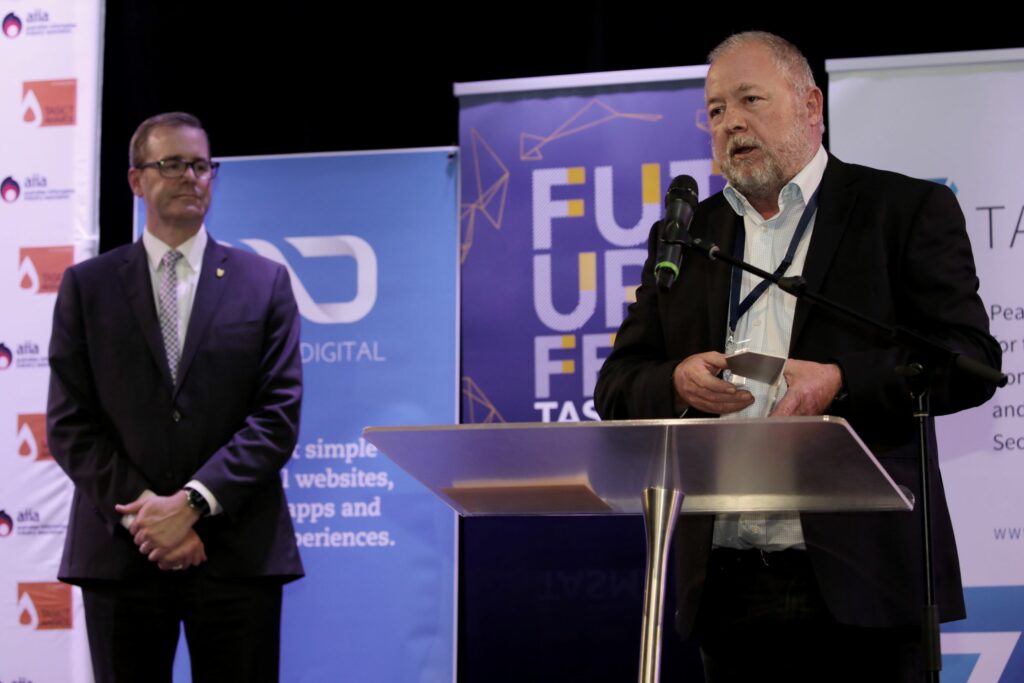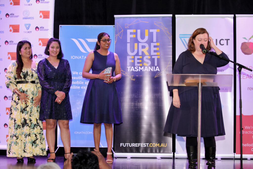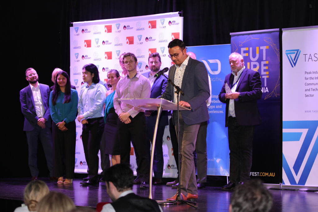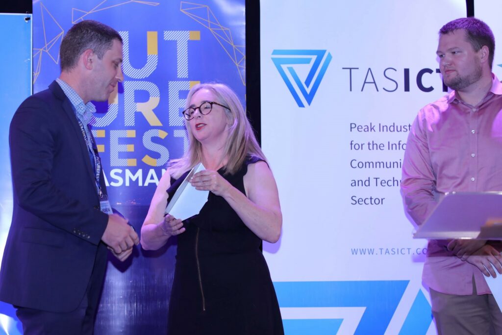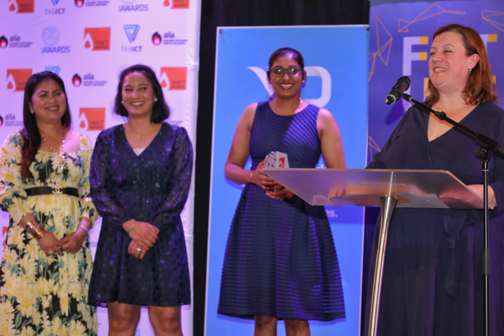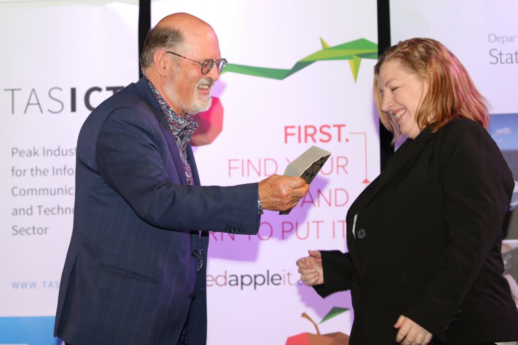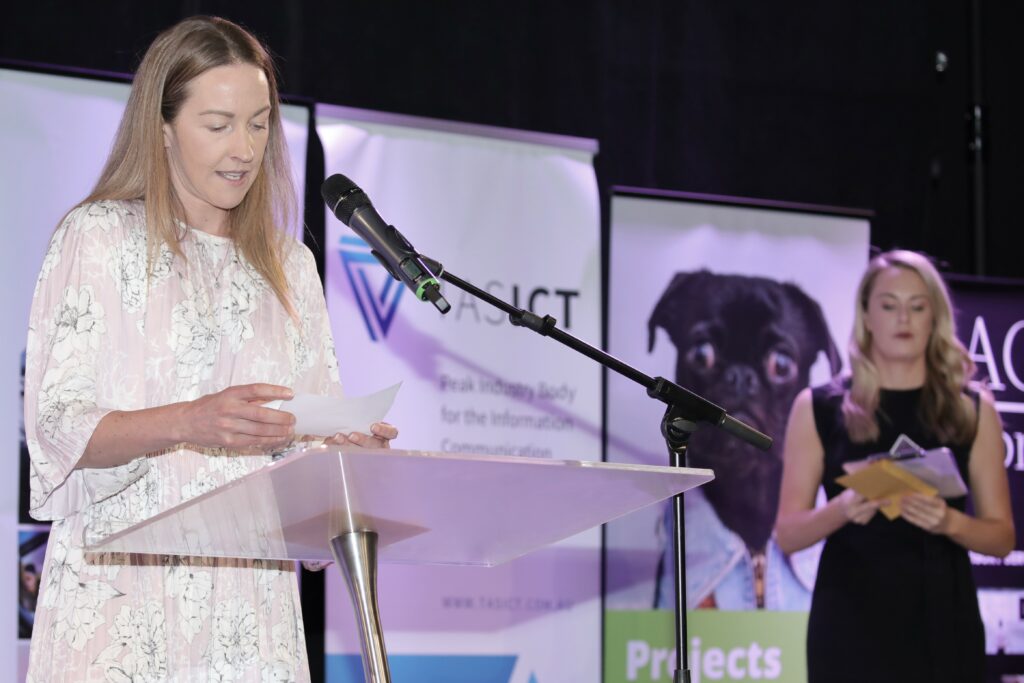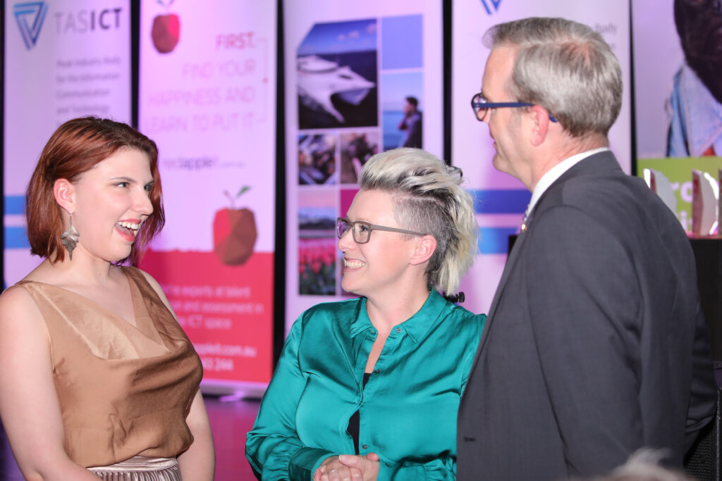 The 2020 TasICT Excellence Awards were held at the C3 Convention Centre South Hobart on Friday November 13. Sponsors of the 11 Award categories presented the winners with their trophies and took the opportunity to pose for photographs at the Media Wall. Our official Photographer was Paul Guo from Paul Photography